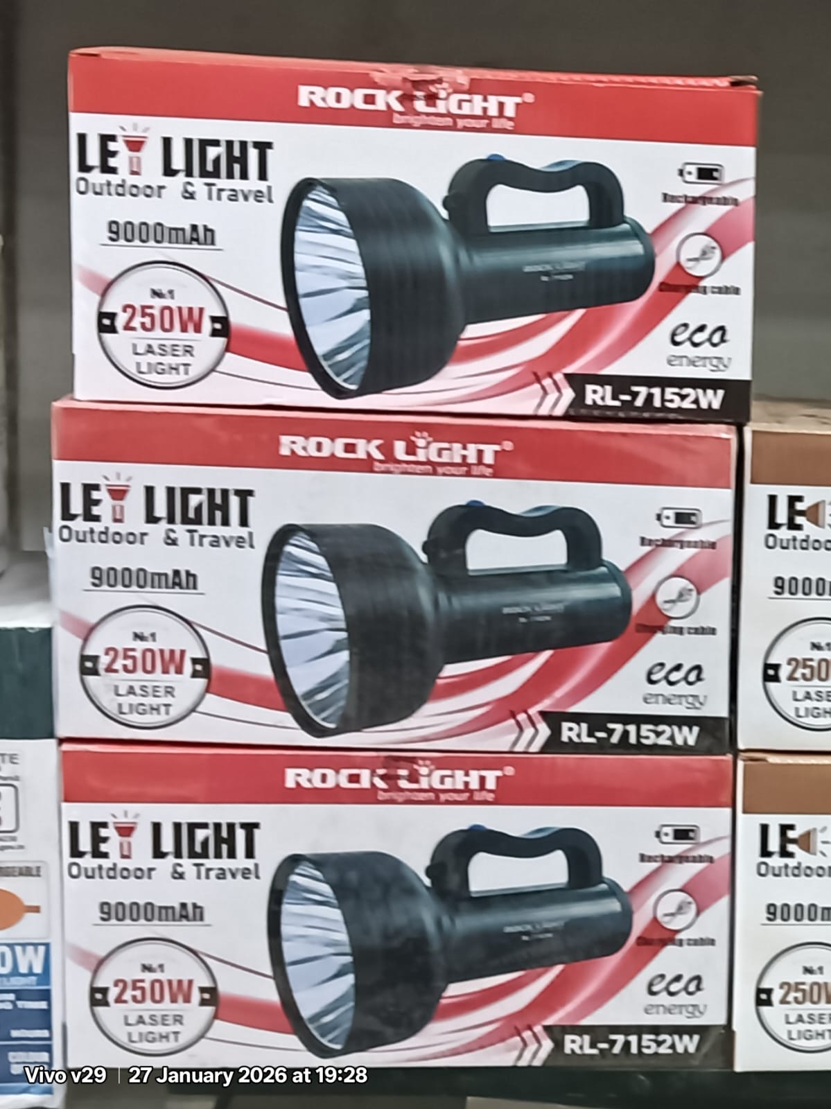 The Rock Light RL-7152W LED Laser Light is a powerful rechargeable searchlight. This light is specially designed for agriculture, outdoor work, travel, and emergency use. Its strong design and high-intensity LED provide bright illumination that can reach long distances at night.